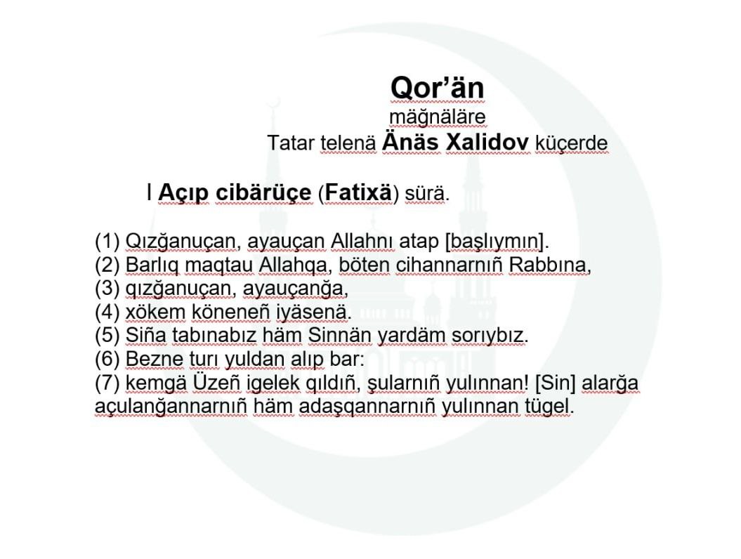 Дөньякүләм танылган гарәп теле белгече профессор Әнәс Халидовның Коръәнне татарчага тәрҗемә итүе һәм аның хезмәтенең үзенчәлеге турында