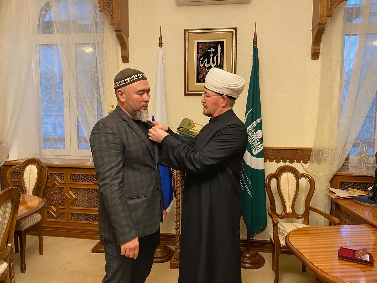 Мөфти Гайнетдин махсус хәрби операциясе зонасында хезмәт иткән имам Рөстәм Мөхитовка медаль тапшырды