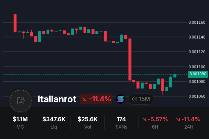 Italian Brainrot ($Italianrot - Raydium) 🪅 CA: BQX1cjcRHXmrqNtoFWwmE5bZj7RPneTmqXB979b2pump 🅲 ⛽️ LP: 2baC5JL75NosEr2oLJZ14gbNjWDuUq3ui33ZPLZTgCEA 🅲 🔎 Search on X 🎯 Exchange: Raydium 💡 Market Cap: $1.69M 💧 Liquidity: $454.07K 💰 Token Price: $0.0016926 ⛽…