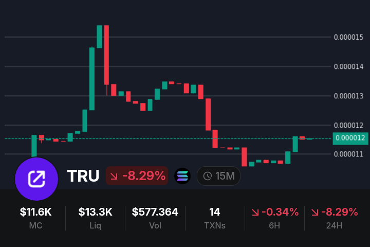 MCAP: $150.45K (+29.4%) | 24H VOL: $132.74K | Real-time trading data and liquidity info for Trulink (TRU) on SOL blockchain. Get insights on the latest price, volume, and market cap.