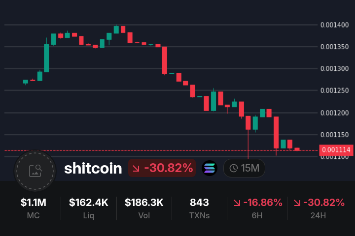 MCAP: $2.51M (-3.41%) | 24H VOL: $772.01K | Real-time trading data and liquidity info for just a shitcoin (shitcoin) on SOL blockchain. Get insights on the latest price, volume, and market cap.