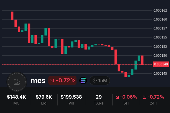 MCAP: $210.56K (-0.18%) | 24H VOL: $81.68 | Real-time trading data and liquidity info for MedicalSwarm (mcs) on SOL blockchain. Get insights on the latest price, volume, and market cap.