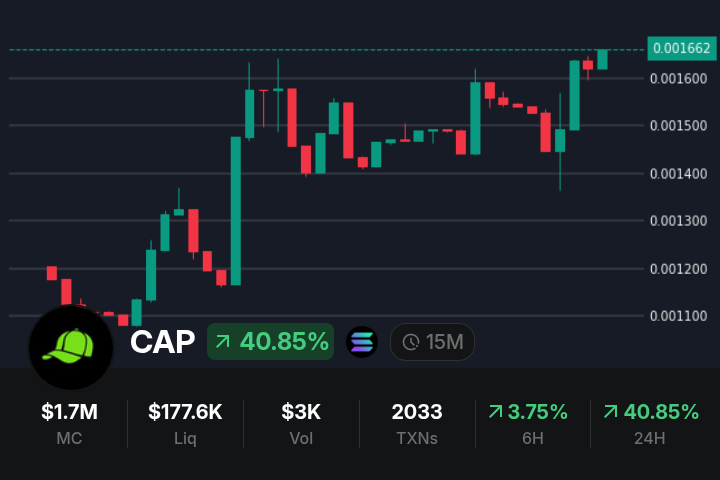 Cap ($CAP - PumpSwap) 🪅 CA: 7E2iF4WFs5biCtkAVFCBPEdnpg7t2D19VzxjxEPvpump 🅲 ⛽️ LP: Dmu6p74f6QKrDnD83RyXy5R6SzBHgpxfZWbc5dtHePfF 🅲 🔎 Search on X 🎯 Exchange: Pumpswap 💡 Market Cap: $4.73M 💧 Liquidity: $320.75K 💰 Token Price: $0.0047253 ⛽ Pooled SOL: 696.3…