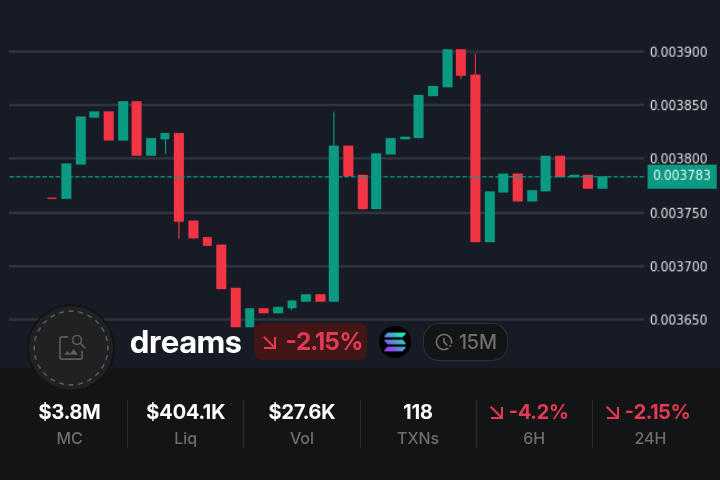 Daydreams ($dreams) 🪅 CA: GMzuntWYJLpNuCizrSR7ZXggiMdDzTNiEmSNHHunpump 🅲 ⛽️ LP: HMqJNKrVf24mUVgdWC4LjuLxWgMBrGU7HAWLji6hLaJQ 🅲 🔎 Search on X 🎯 Exchange: Raydium 💡 Market Cap: $4.81M 💧 Liquidity: $502.38K 💰 Token Price: $0.0048132 ⛽ Pooled SOL: 1128.8 🪙 …