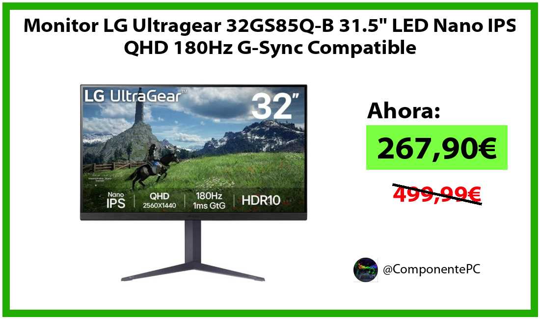 πΉMonitor LG Ultragear 32GS85Q-B 31.5" LED Nano IPS QHD 180Hz G-Sync Compatible solo 267,90β¬βοΈβ‘οΈ(PVP: 499,99β¬)