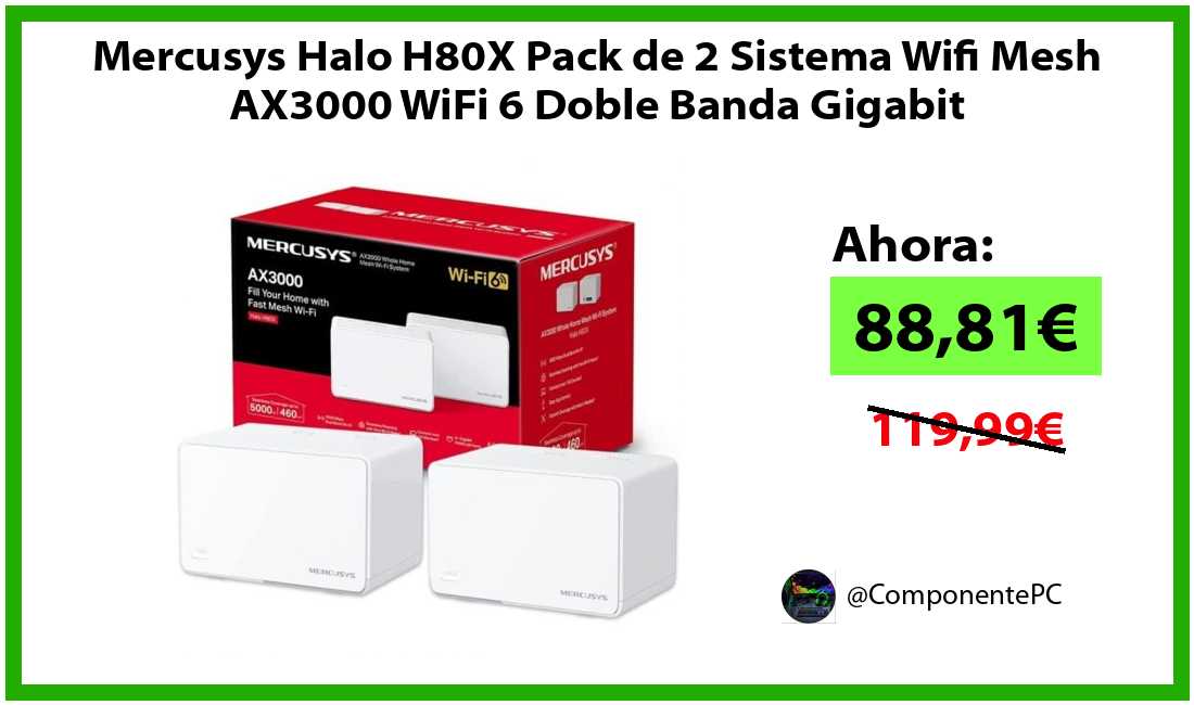 πΉMercusys Halo H80X Pack de 2 Sistema Wifi Mesh AX3000 WiFi 6 Doble Banda Gigabit solo 88,81β¬βοΈβ‘οΈ