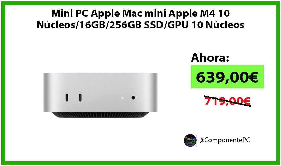 🔹Mini PC Apple Mac mini Apple M4 10 Núcleos/16GB/256GB SSD/GPU 10 Núcleos solo 639,00€❗️⚡️(PVP: 719,00€)