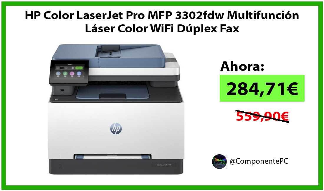🔹HP Color LaserJet Pro MFP 3302fdw Multifunción Láser Color WiFi Dúplex Fax solo 284,71€❗️⚡️(PVP: 559,90€)