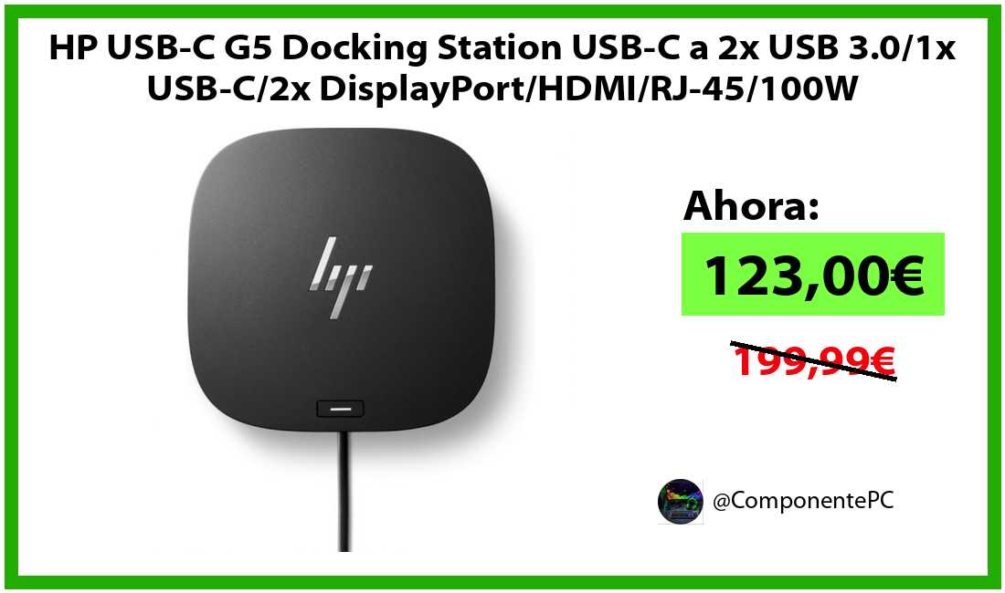 🔹HP USB-C G5 Docking Station USB-C a 2x USB 3.0/1x USB-C/2x DisplayPort/HDMI/RJ-45/100W solo 123,00€❗️⚡️(PVP: 199,99€)