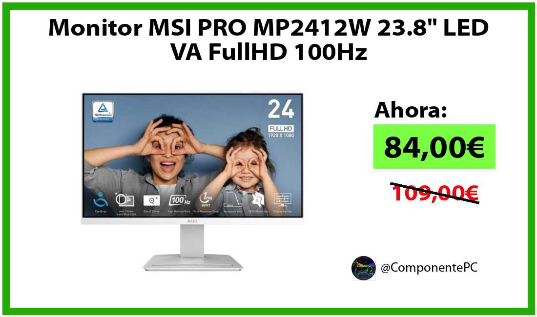 🔹Monitor MSI PRO MP2412W 23.8" LED VA FullHD 100Hz solo 84,00€❗️⚡️(PVP: 109,00€)