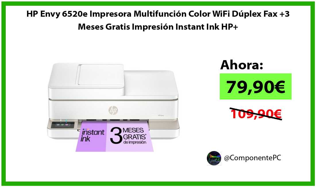 🔹HP Envy 6520e Impresora Multifunción Color WiFi Dúplex Fax +3 Meses Gratis Impresión Instant Ink HP+ solo 79,90€❗️⚡️