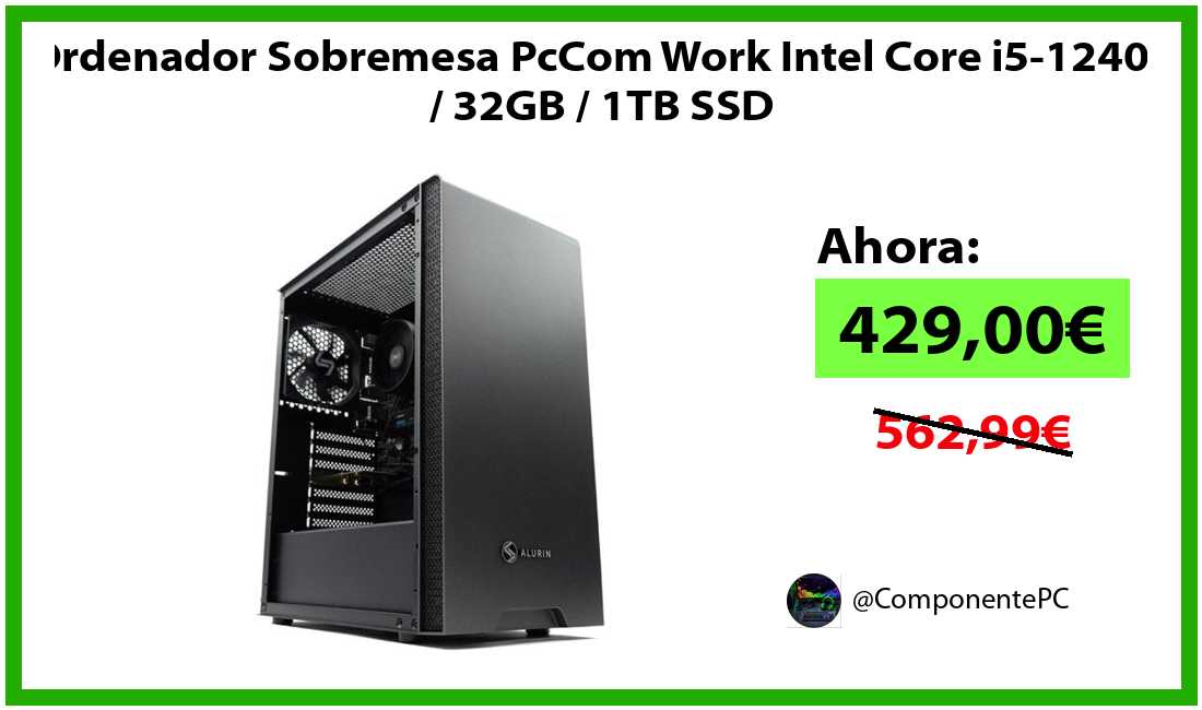 🔹Ordenador Sobremesa PcCom Work Intel Core i5-12400 / 32GB / 1TB SSD solo 429,00€❗️⚡️(PVP: 562,99€)