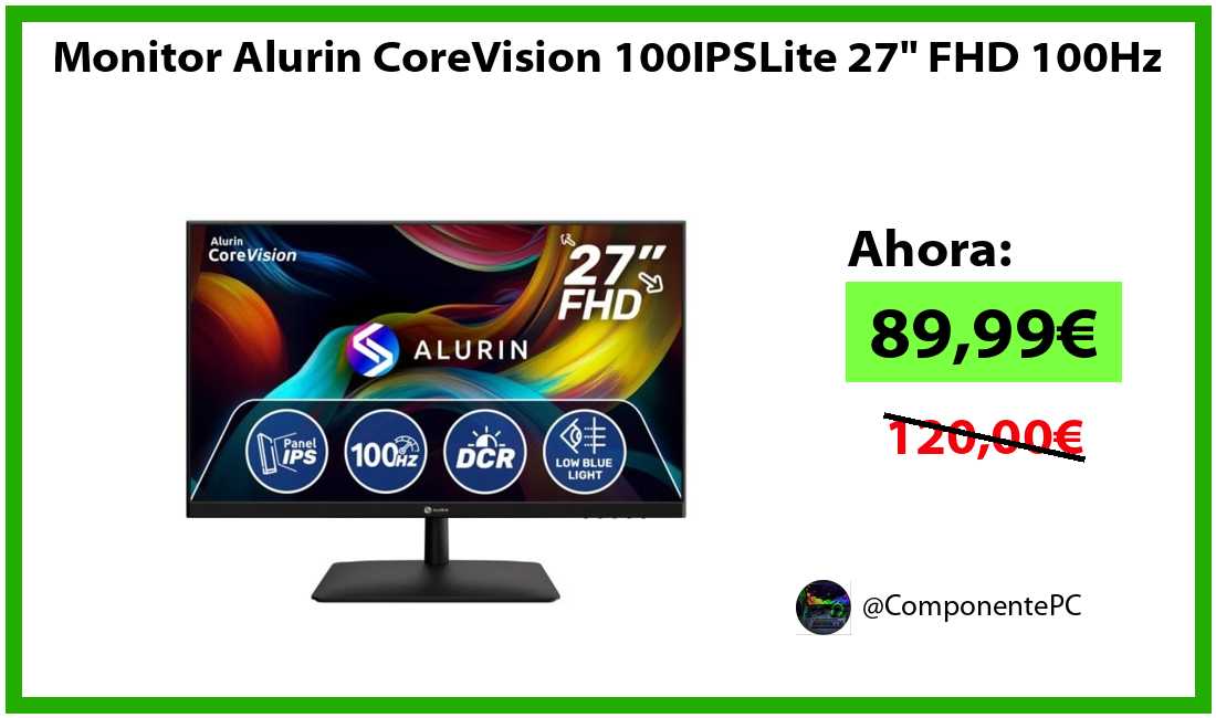 🔹Monitor Alurin CoreVision 100IPSLite 27" FHD 100Hz solo 89,99€❗️⚡️