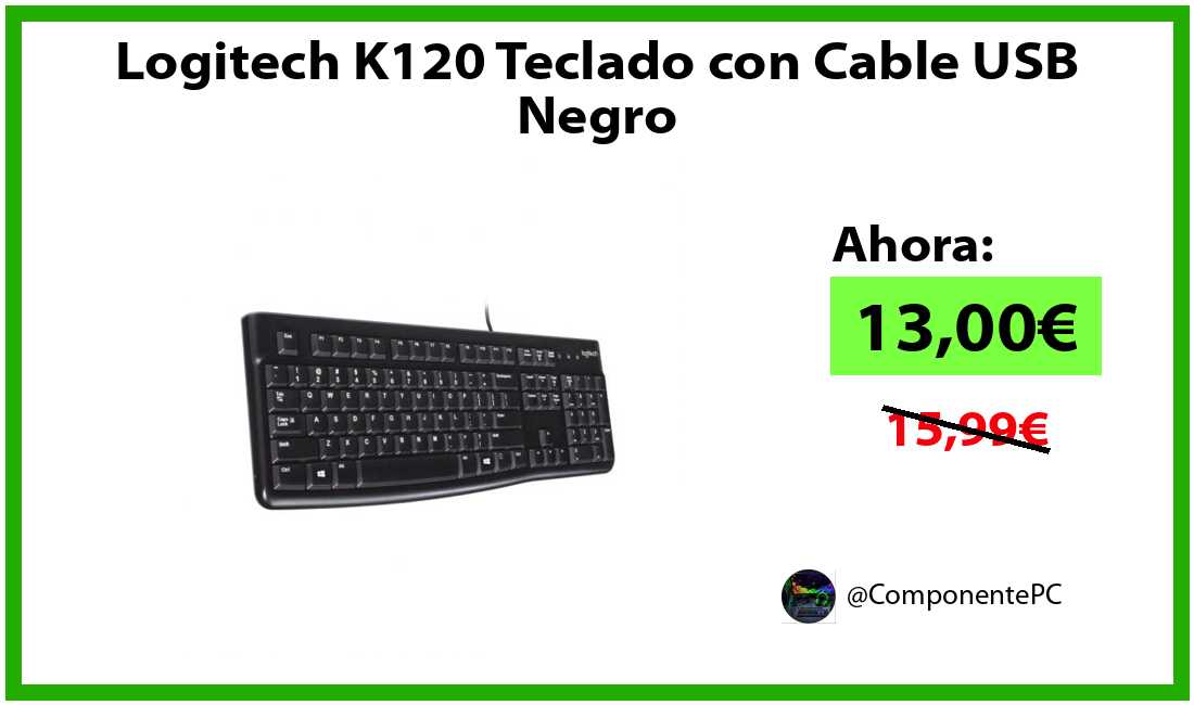 🔹Logitech K120 Teclado con Cable USB Negro solo 13,00€❗️⚡️