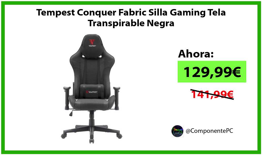 🔹Tempest Conquer Fabric Silla Gaming Tela Transpirable Negra solo 129,99€❗️⚡️(PVP: 141,99€)