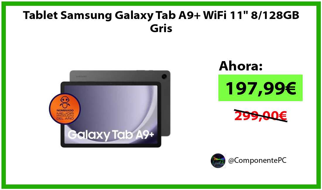 🔹Tablet Samsung Galaxy Tab A9+ WiFi 11" 8/128GB Gris solo 197,99€❗️⚡️