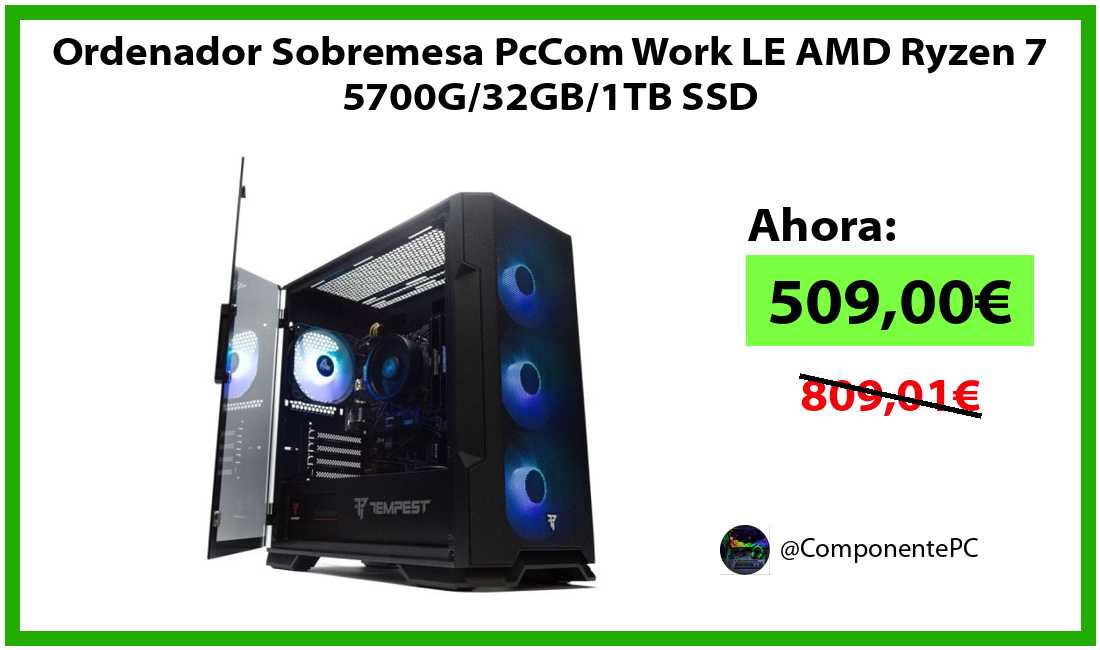 🔹Ordenador Sobremesa PcCom Work LE AMD Ryzen 7 5700G/32GB/1TB SSD solo 509,00€❗️⚡️(PVP: 809,01€)