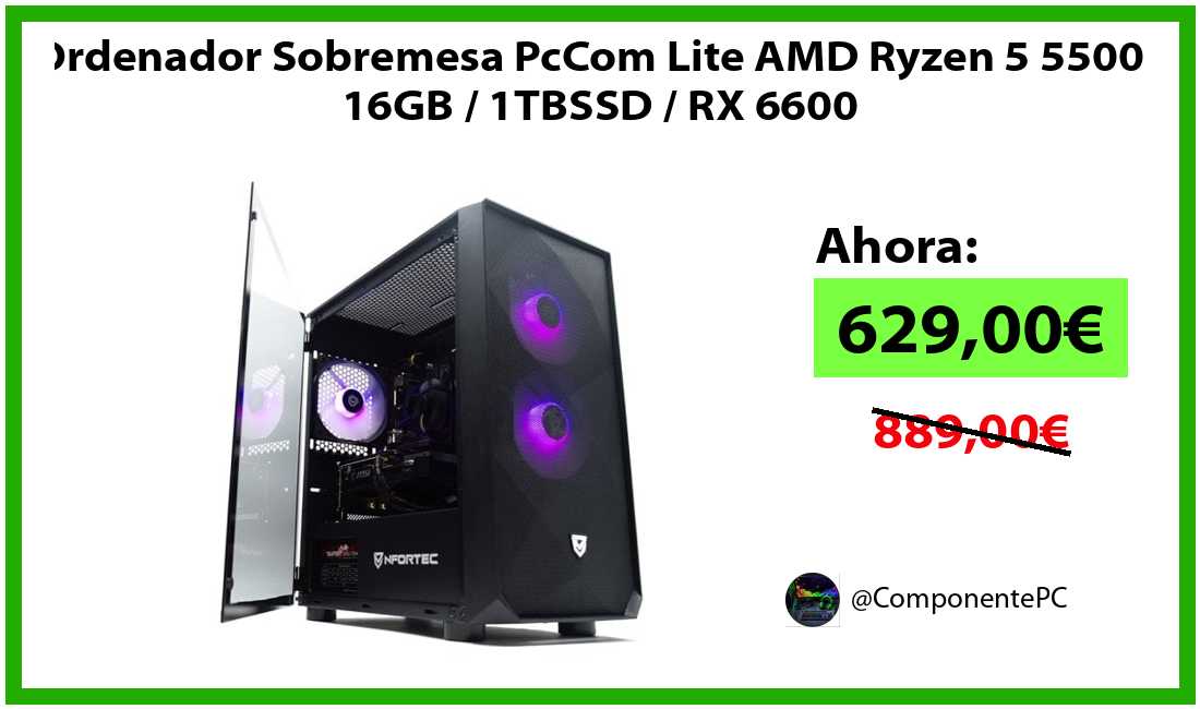 🔹Ordenador Sobremesa PcCom Lite AMD Ryzen 5 5500 / 16GB / 1TBSSD / RX 6600 solo 629,00€❗️⚡️(PVP: 889,00€)