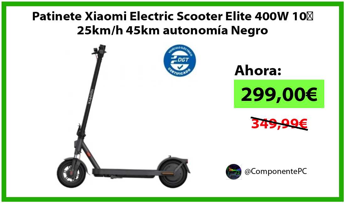 🔹Patinete Xiaomi Electric Scooter Elite 400W 10″ 25km/h 45km autonomía Negro solo 299,00€❗️⚡️