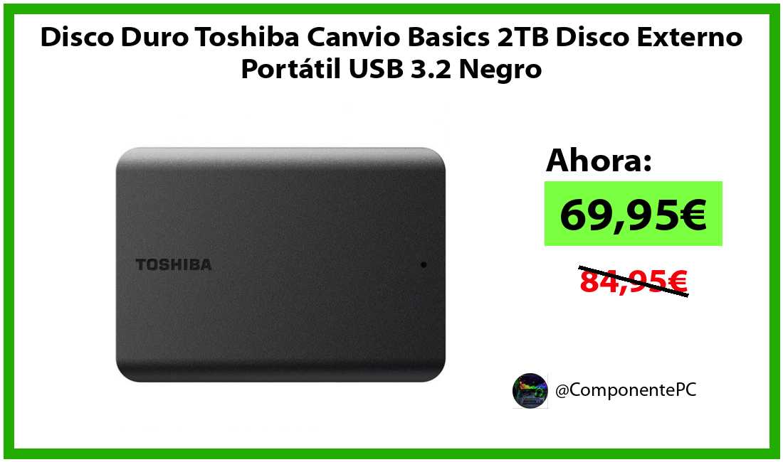 🔹Disco Duro Toshiba Canvio Basics 2TB Disco Externo Portátil USB 3.2 Negro solo 69,95€❗️⚡️