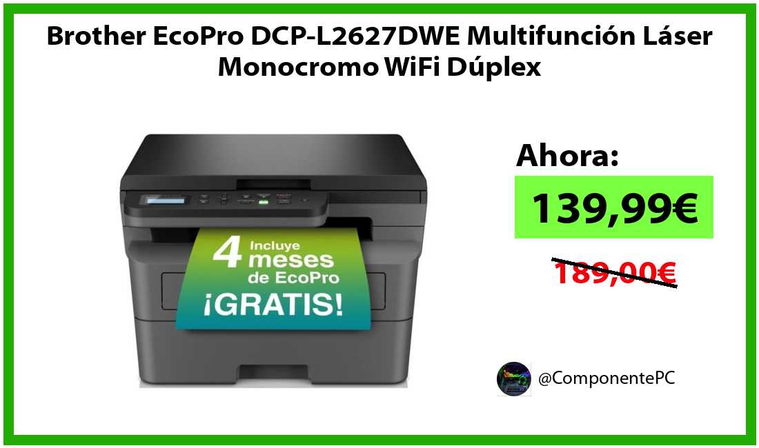 🔹Brother EcoPro DCP-L2627DWE Multifunción Láser Monocromo WiFi Dúplex solo 139,99€❗️⚡️