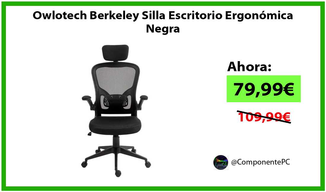🔹Owlotech Berkeley Silla Escritorio Ergonómica Negra solo 79,99€❗️⚡️(PVP: 109,99€)