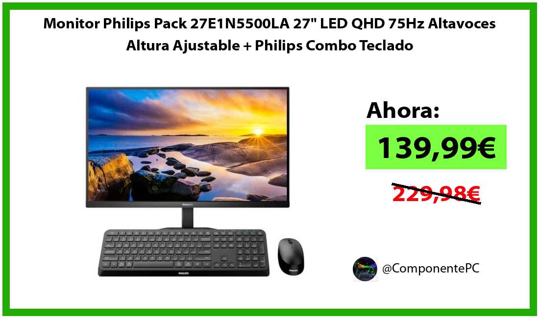 🔹Monitor Philips Pack 27E1N5500LA 27" LED QHD 75Hz Altavoces Altura Ajustable + Philips Combo Teclado solo 139,99€❗️⚡️