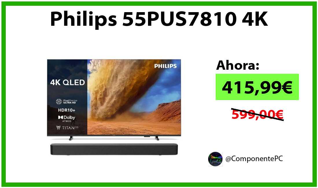 🔹Philips 55PUS7810 4K solo 415,99€❗️⚡️(PVP: 599,00€)