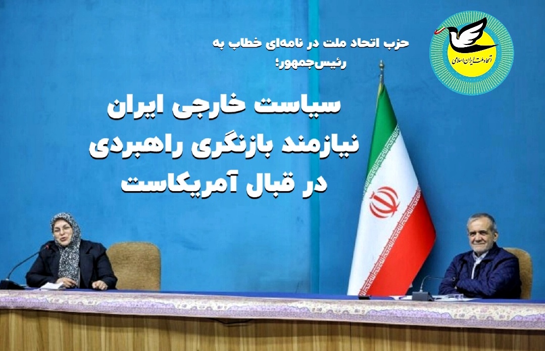 🗒 احزاب: حزب اتحاد ملت در نامهای خطاب به رئیسجمهور: سیاست خارجی ایران نیازمند بازنگری راهبردی در قبال آمریکاست