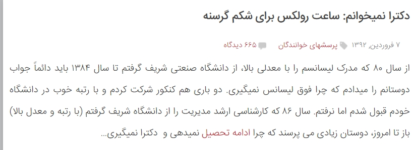 چرا دکتری نمیخوانم؟! ساعت رولکس برای شکم گرسنه!