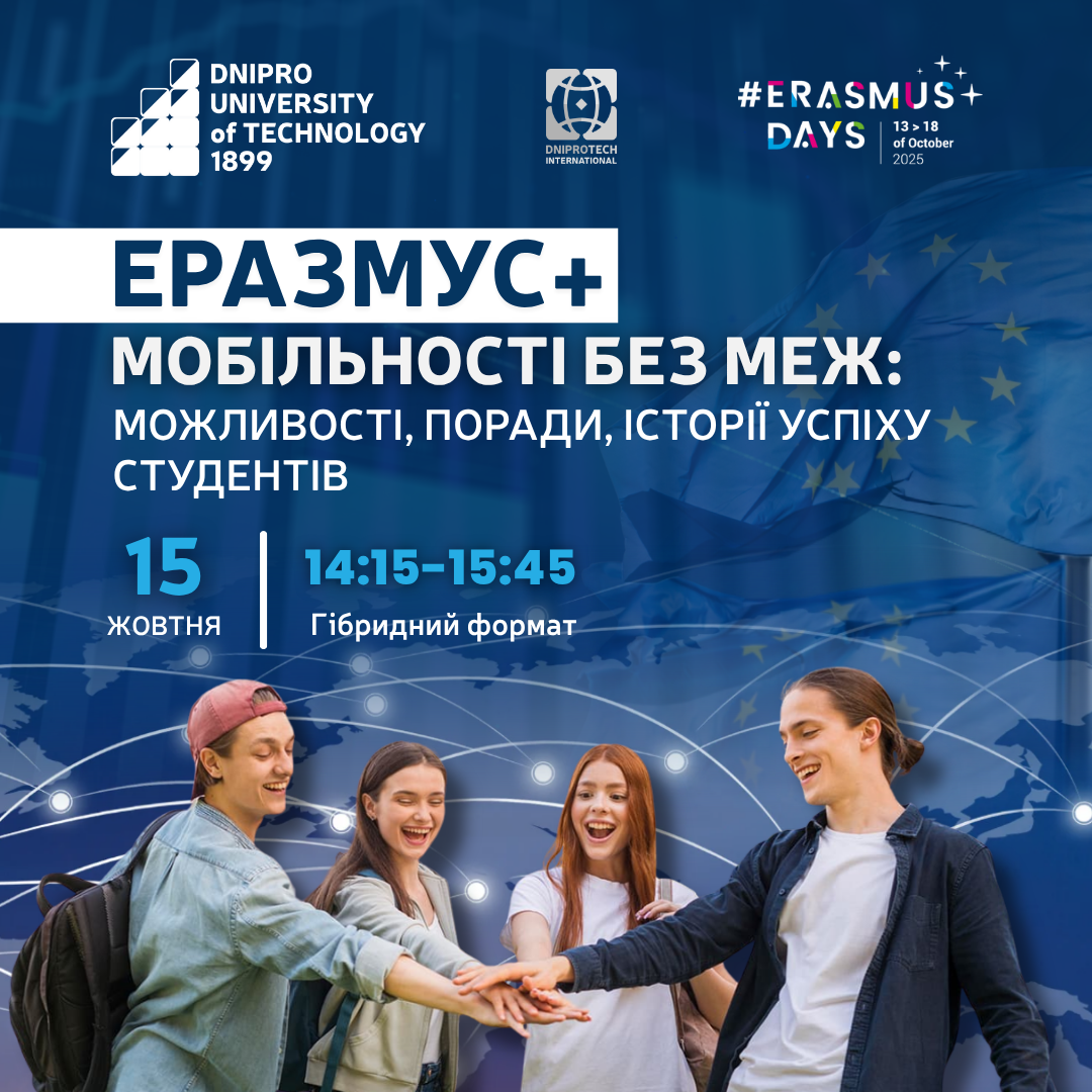 Тоді радимо відвідати захід від команди #dniprotech_international — «Еразмус+ мобільності без меж: можливості, поради, історії успіху студентів»! Долучайтеся до нас і дізнайтеся про: